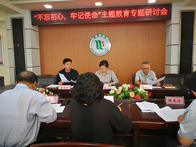 9月18日下午,为认真贯彻落实中央和省市关于扎实做好“不忘初心、牢记使命”主题教育工作的指示要求,根据教育开展情况,郑州市社科联就如何高质量组织好“不忘初心、牢记使命”主题教育召开专题研讨会,市社科联党组书记、主席、社科院院长,市社科联主题教育领导小组组长叶光林同志主持会议。市社科联主题教育领导小组成员及办公室同志参加会议。