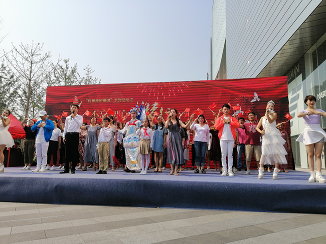 现场led屏、创意签到框、百米童画展、街道党建成果展示,让人仿佛置身于那段激情燃烧的红色岁月!“我和我的祖国一刻也不能分割,无论我走到哪里都流出一首赞歌……”随着一声稚嫩的童音,开场快闪节目拉开了活动的序幕。天籁般的童音在广场回荡,感染了现场听众,党员、群众、老人纷纷加入,戏曲表演、轮滑技艺齐上阵,用多元化的“文化自信”向祖国深情“表白”。