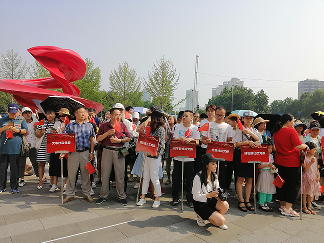 6月26日上午,在建党98年华诞来临之际,金水区文化路街道党工委在正弘广场开展“不忘初心追梦行,牢记使命铸忠诚”大型庆祝活动,省社科联部分党员干部作为文丰社区代表参加了活动。