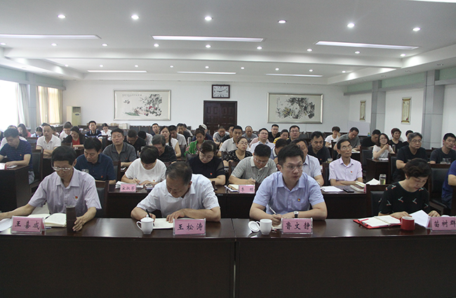 7月2日,省社科联主席李庚香为全体党员干部作“不忘初心、牢记使命,为中国人民谋幸福、为中华民族谋复兴”专题党课。省委第七巡回指导组副组长王松涛等同志到会指导。