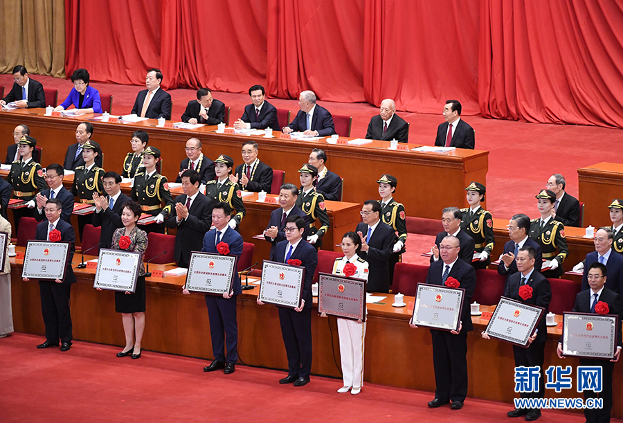 习近平等为受表彰的个人和集体代表颁奖。