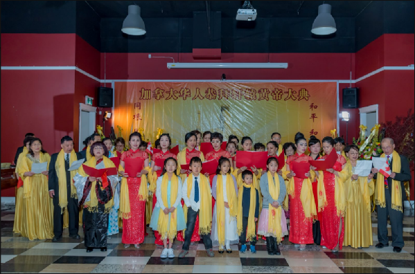最后,歌唱家陈拾宽演唱《我的中国心》,台下参拜人员一起挥舞小旗,共同祈福华夏繁荣昌盛,祝愿世界和平和谐,将活动推向高潮,戊戌年加拿大华人恭拜轩辕黄帝大典圆满礼成。