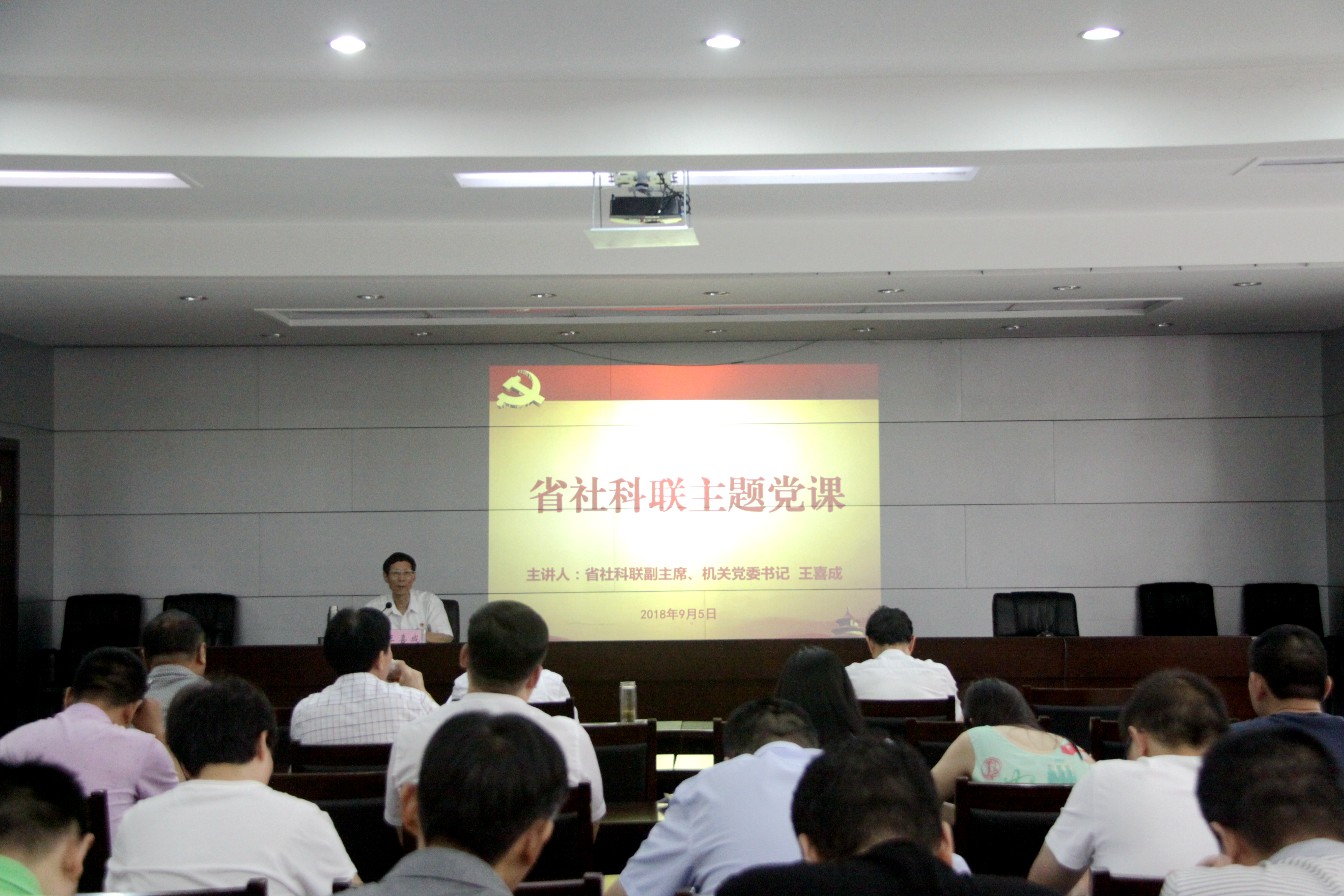 机关党建作为党的建设的重要环节,在整个党建体系中处于非常重要的地位。为了进一步加强机关党的建设工作,根据党组和机关党委安排,省社科联副主席、机关党委书记王喜成同志以“学习贯彻省委十届六次全会精神、加强机关党建工作”为主题,为全体干部职工讲党课。省社科联主席李庚香、副巡视员张钢杰出席。